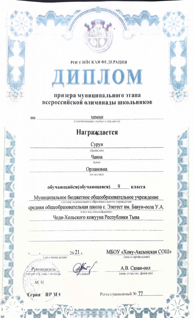 9 класс. Кл.руководитель: Оюн Д.В.