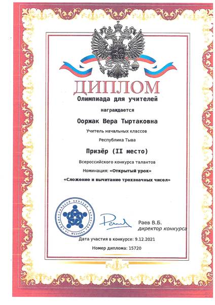 3 класс. Кл.руководитель: Тонгак Р.А.