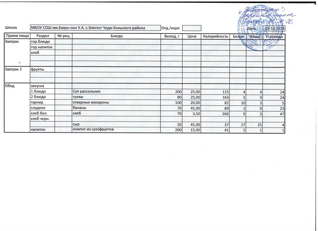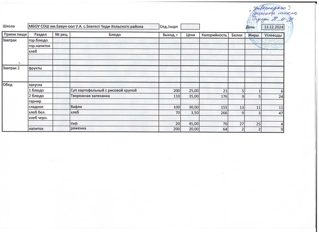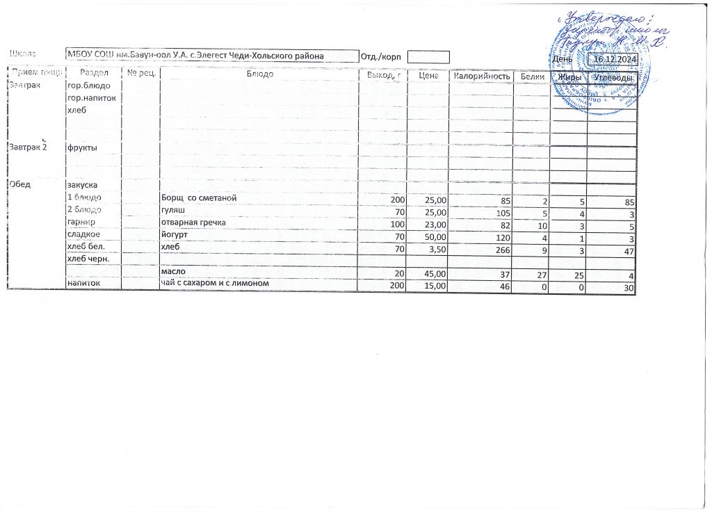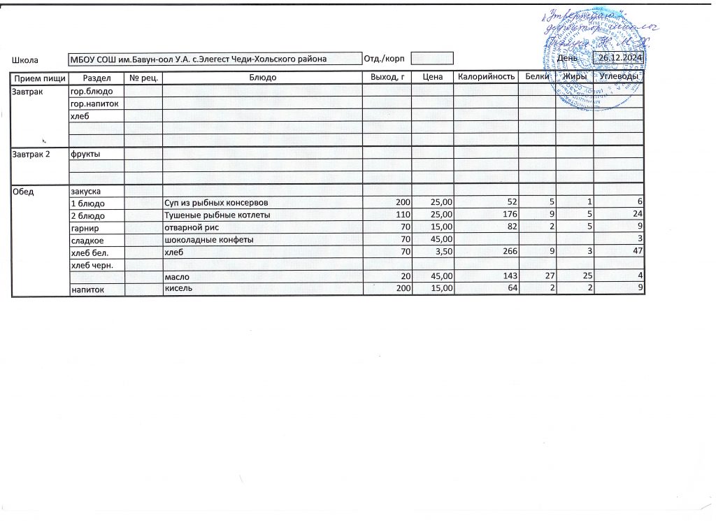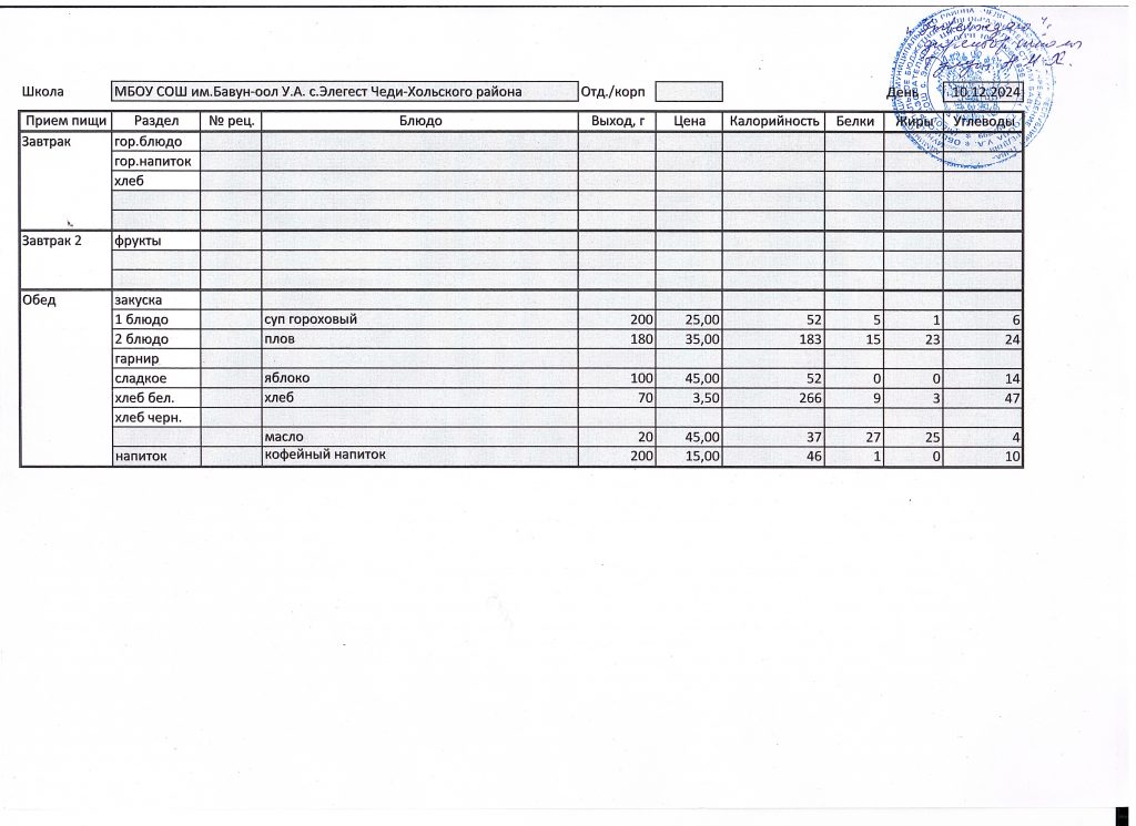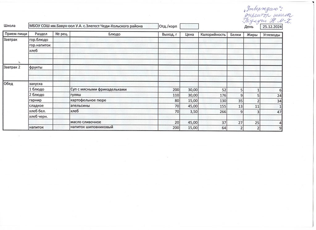 Меню 2024-2025 учебный год