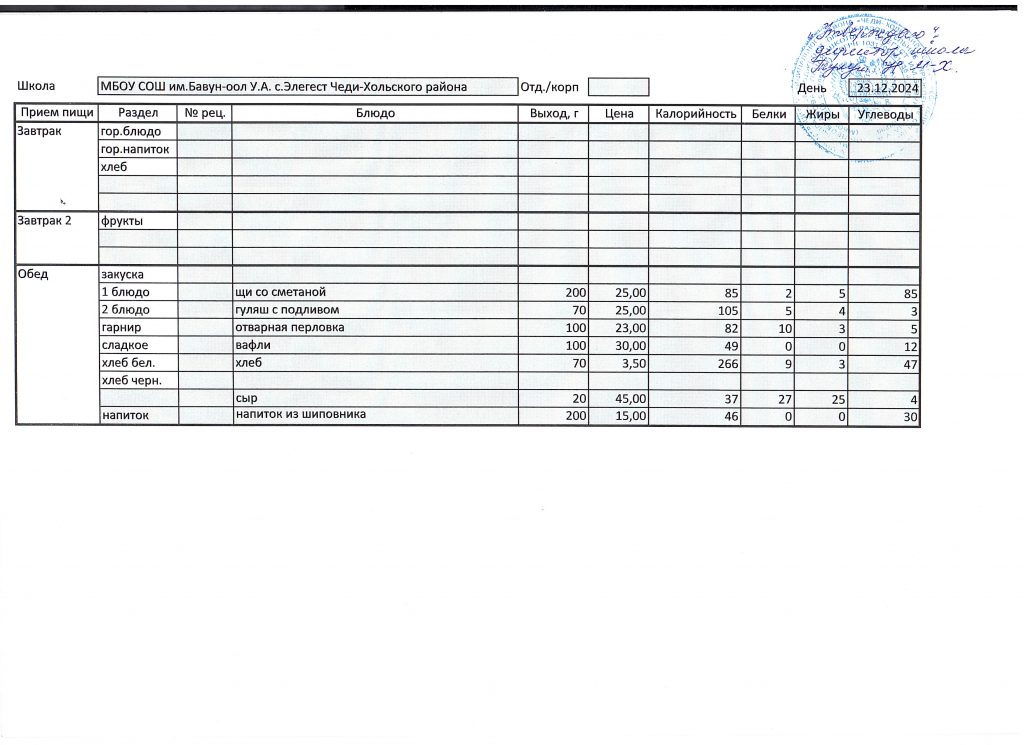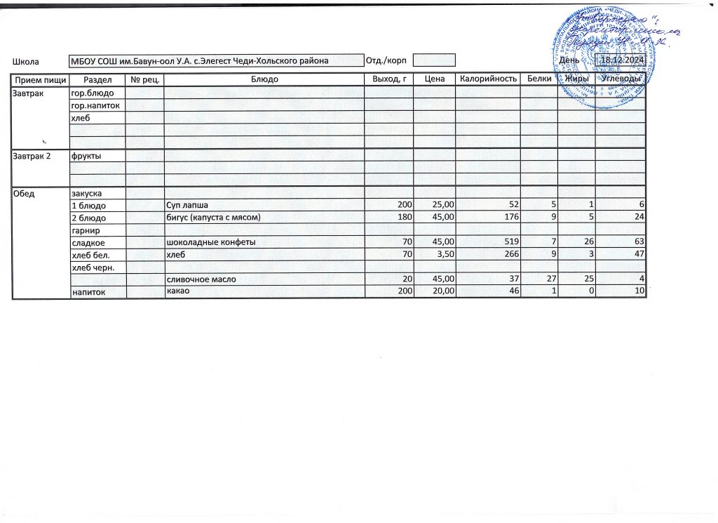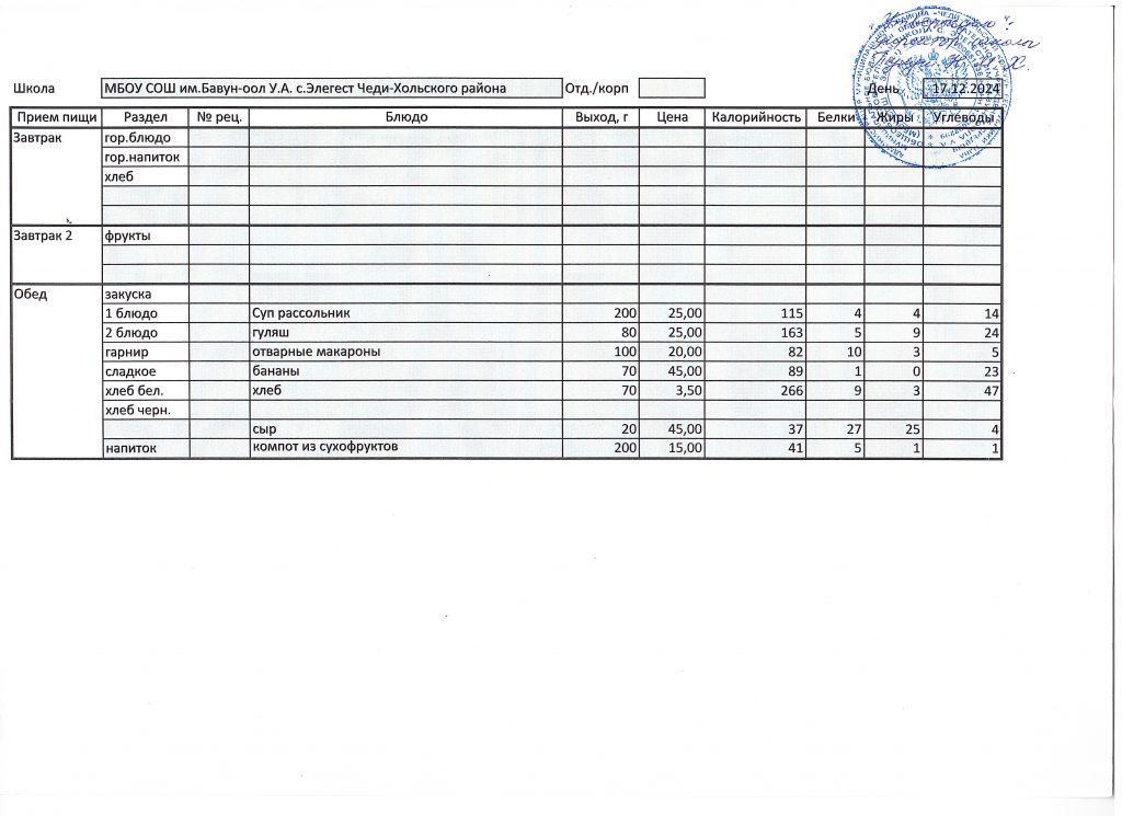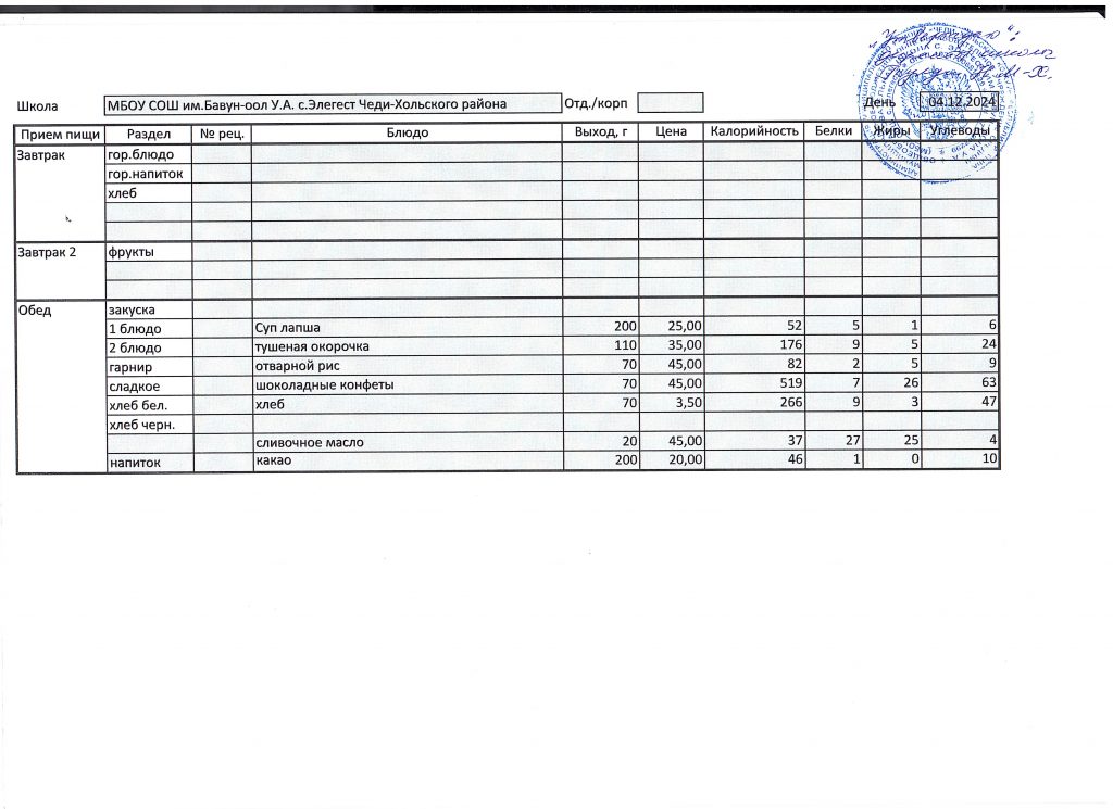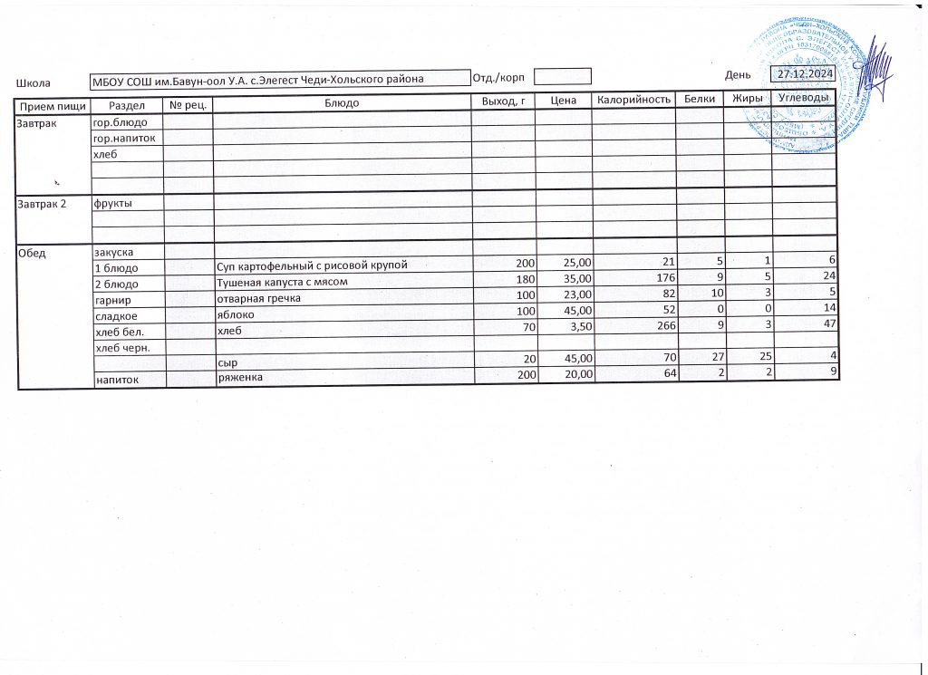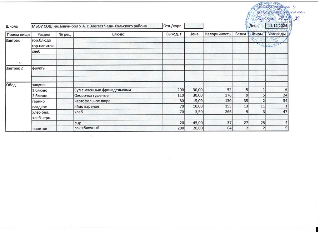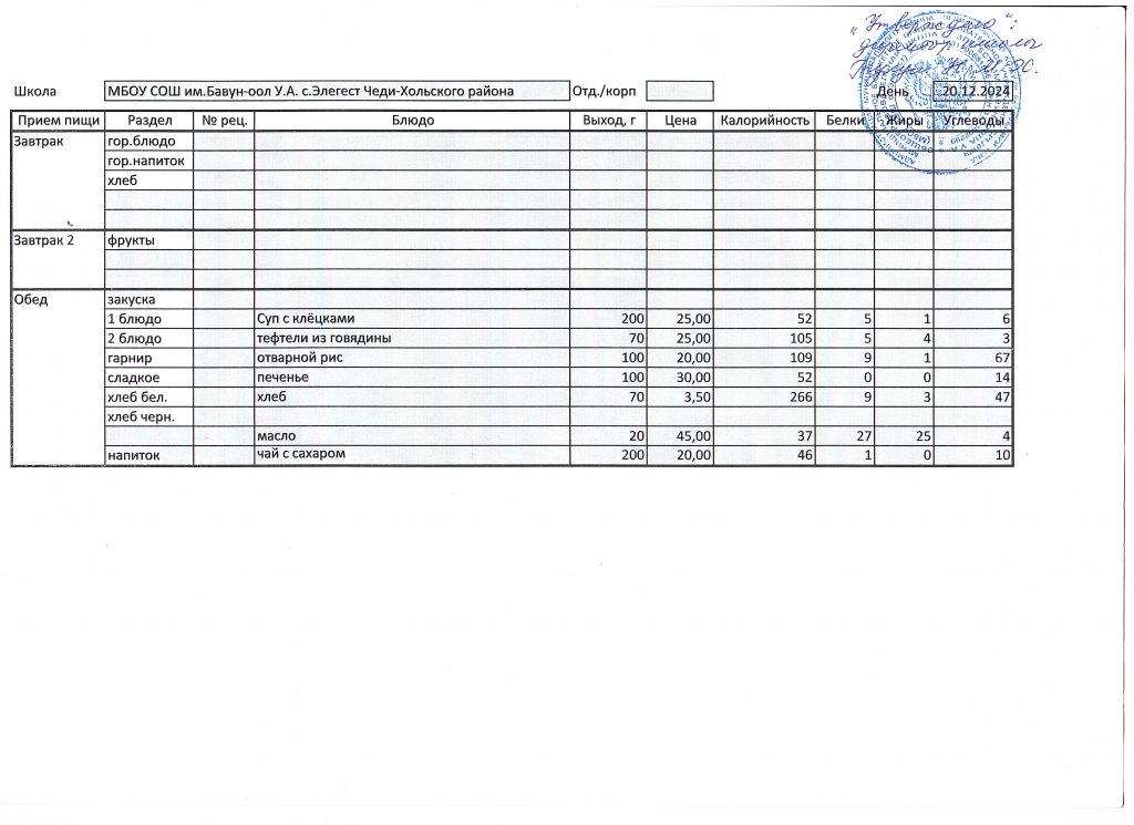 Меню 2024-2025 учебный год