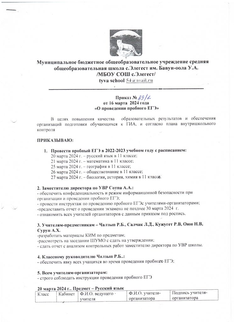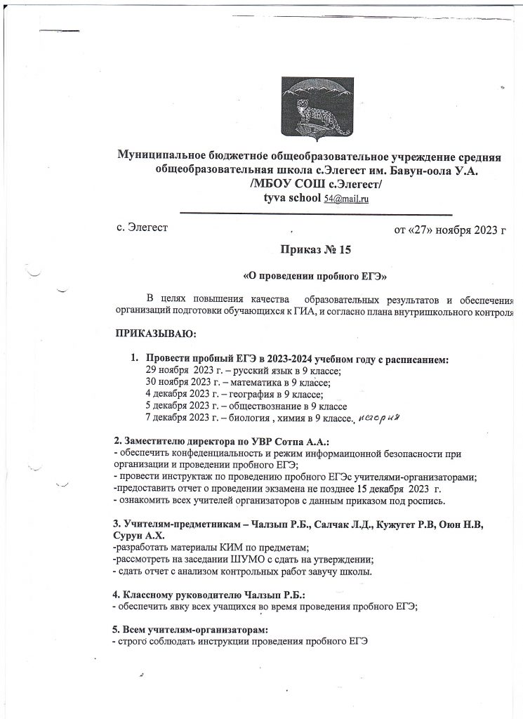 668336 Республика Тыва, с.Элегест, ул. Школьная 5