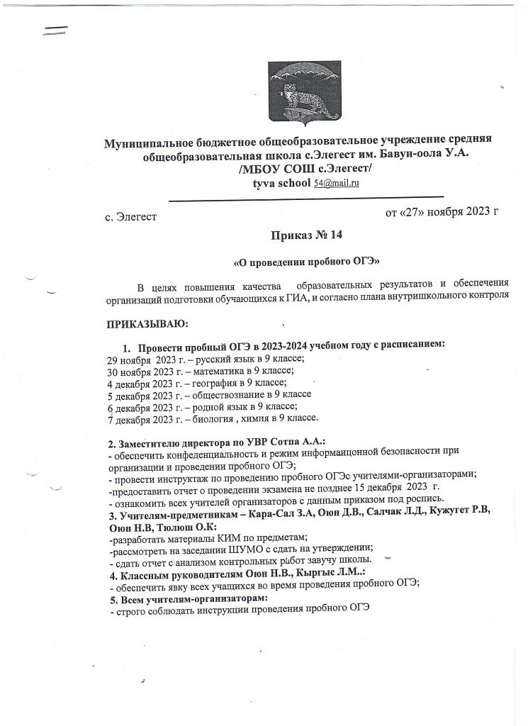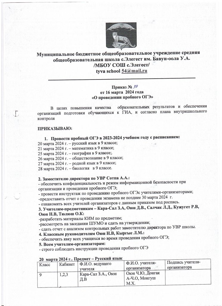 668336 Республика Тыва, с.Элегест, ул. Школьная 5